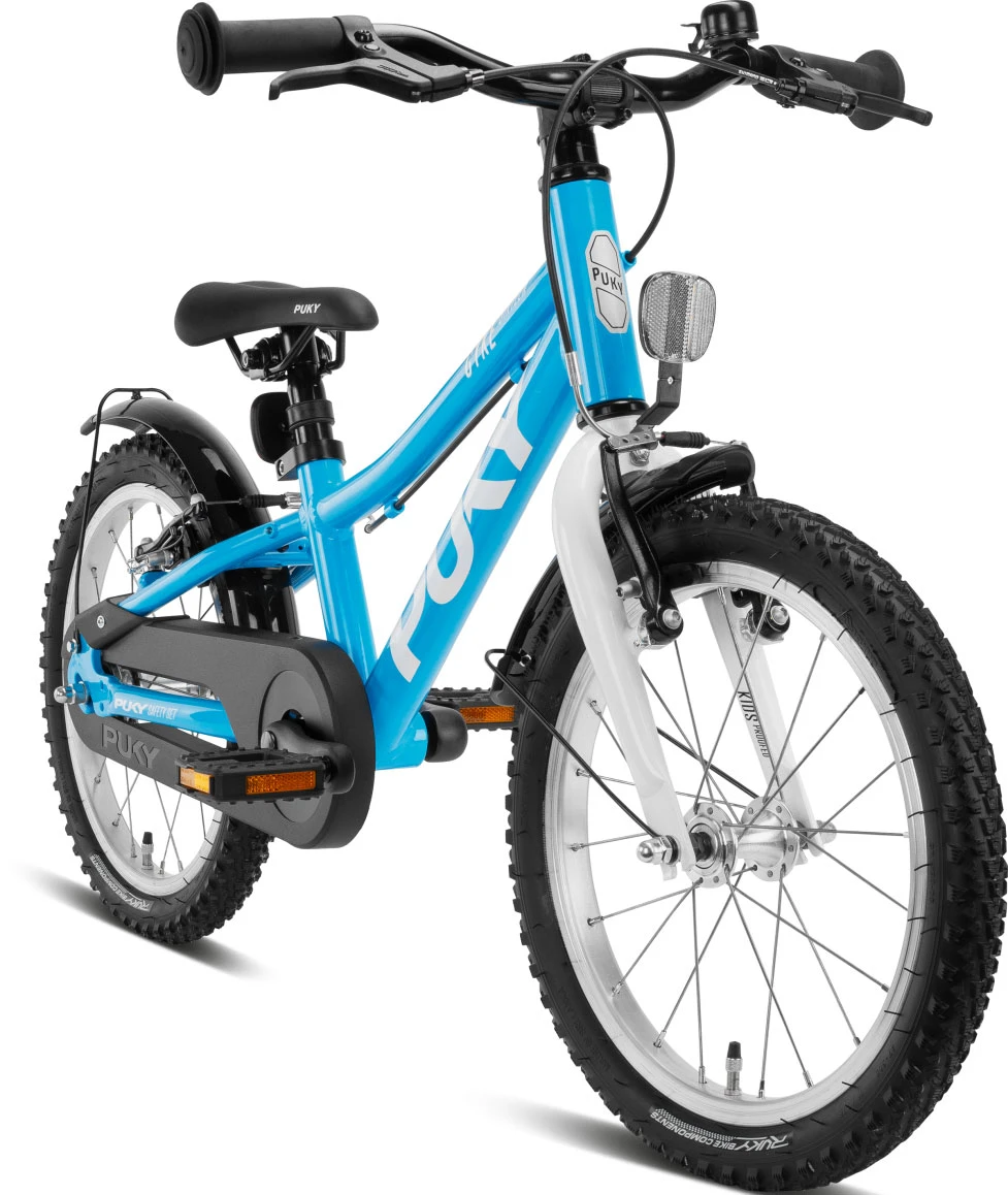 Das PUKY CYKE 16-1 Freilauf bringt Kinder ab 4 Jahren Spaß an Bewegung und das Gefühl von Freiheit Kindgerechte Rahmengeometrie, leite Aluminiumkomponenten und das PUKY SAFETY SET machen CYKE zum zuverlässigen Begleiter. Das PUKY CYKE 16-1 Freilauf verzichtet auf eine Rücktrittbremse ist jedoch mit einem normgerechten V-Brake Bremssystem ausgestattet, das Kinder sicher zu stehen bringt. Der Freilauf ist in sofern praktisch, dass Kinder im Stand die optimale Startposition der Pedalen einstellen können. Auch die geringe Überstandshöhe des PUKY CYKE 16-1 Freilauf garantiert schnelles und müheloses auf- und absteigen an er Ampel.