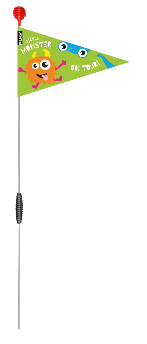 Für mehr Sicherheit im verkehrsnahen Raum: Dank des faltbaren Sicherheitswimpel mit knallrotem Safety-Prallschutz und buntem Fähnchen werden Kinder von Autofahrern besser wahrgenommen.